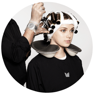 3. Rod Wrapping – Hair is wrapped around perm rods based on curl size.